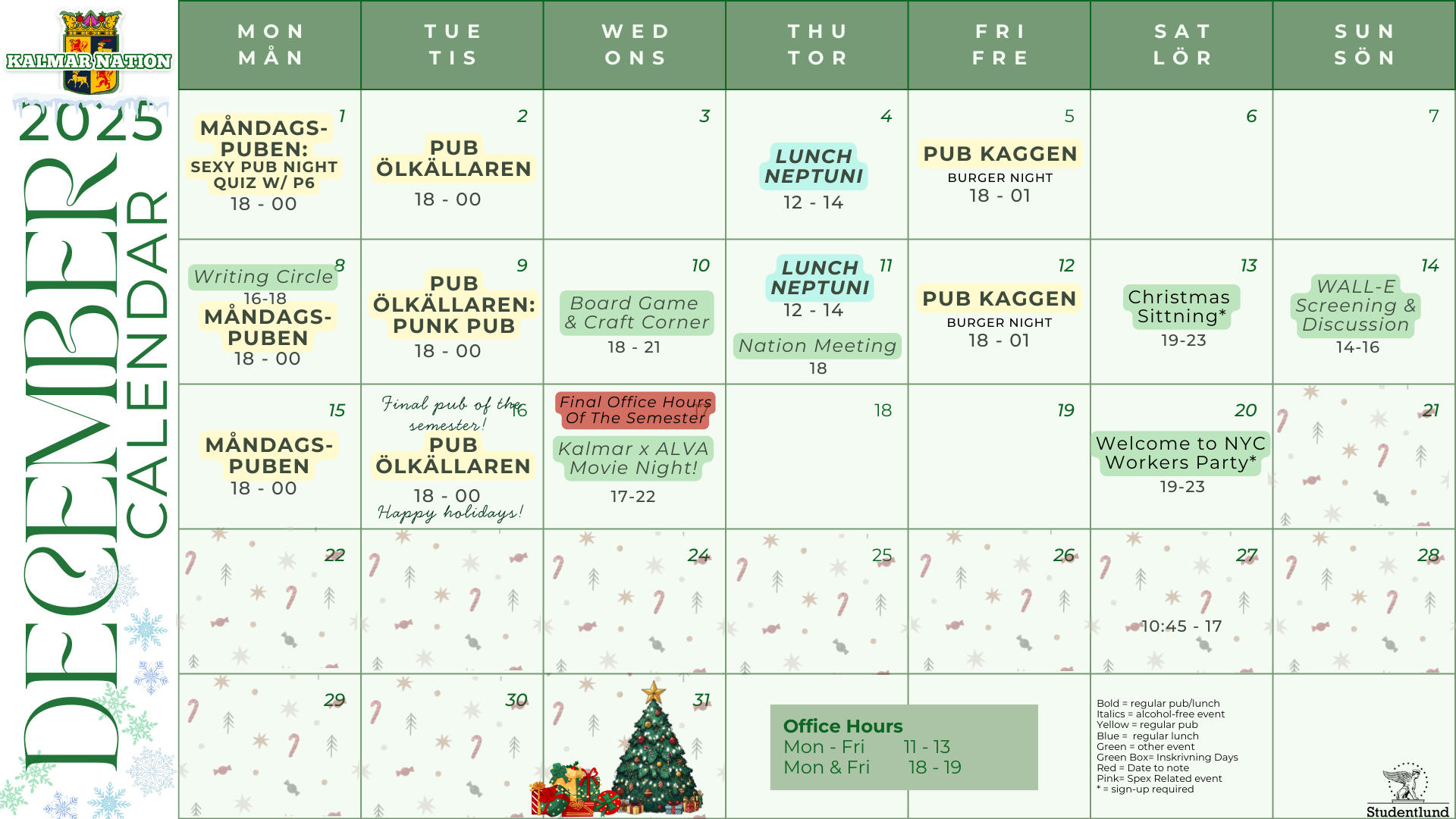 We require proof of Studentlund membership and valid ID (Swedish/EU ID or passports) for pub entry. We also do not take table bookings, entry is based on a first come, first serve policy.